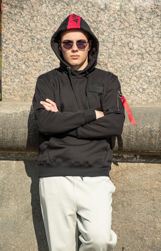 Толстовка ALPHA INDUSTRIES RED STRIPE HOODY black