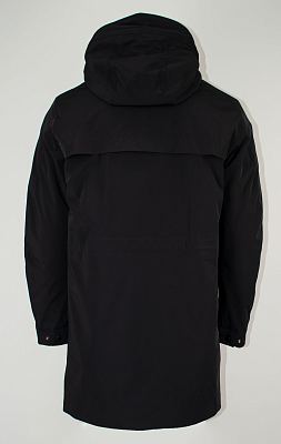 Высокий ворот стойка застегивается на кнопки и фирменный карабин и отлично защищает от ветра и холода.
