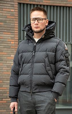 Мужской пуховик Параджамперс выполнен из водонепроницаемого материала, который отлично защищает от ветра, дождя и снега. Отделка и детали пуховика выполнены из натуральной овчины.
